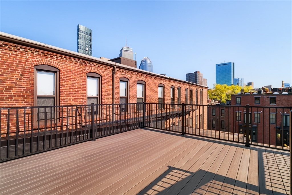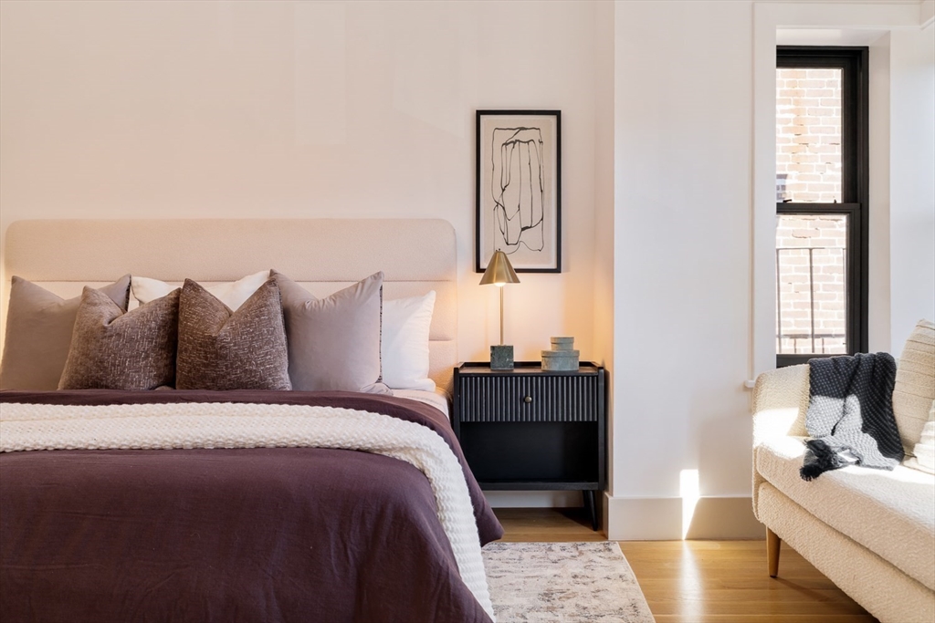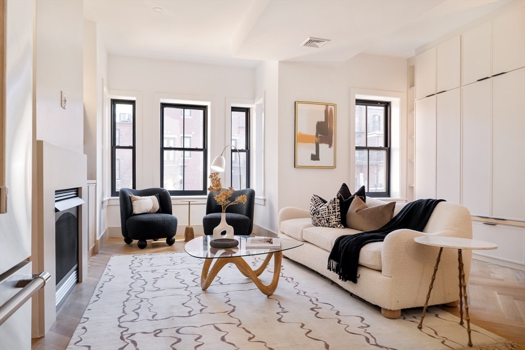 Impeccably built and brilliantly designed, this new upper duplex delivers 2 bedrooms, 2.5 baths, and a private roof deck with jaw-dropping Back Bay skyline views. This home dazzles with herringbone floors and a custom kitchen featuring Thermador appliances, bespoke cabinetry, and a chic dining nook with built-in seating. A gas fireplace framed by tailored millwork warms the stylish living area. Upstairs, the primary suite impresses with a walk-in closet and spa-like bath with double vanity, while the second bedroom offers its own en-suite with a soaking tub. A full staircase leads to the showstopping roof deck where the Prudential and Hancock towers set a stunning backdrop. Complete with a deeded parking space, this home combines exceptional craftsmanship, high-end finishes, and an unbeatable location steps from Sparrow Park, the Southwest Corridor, and the vibrant shops and dining of Back Bay and the South End.