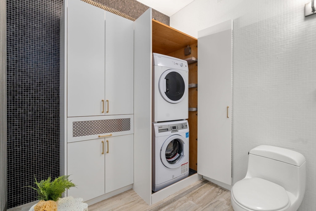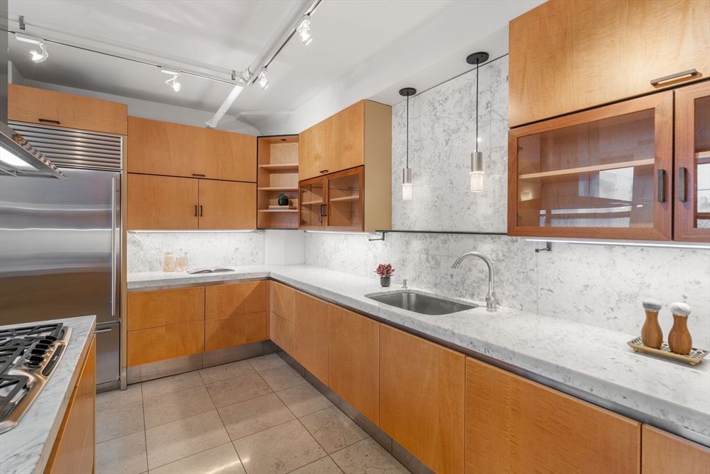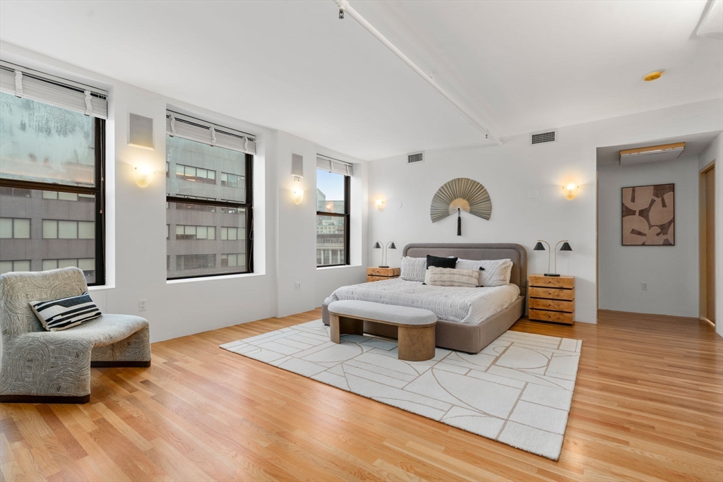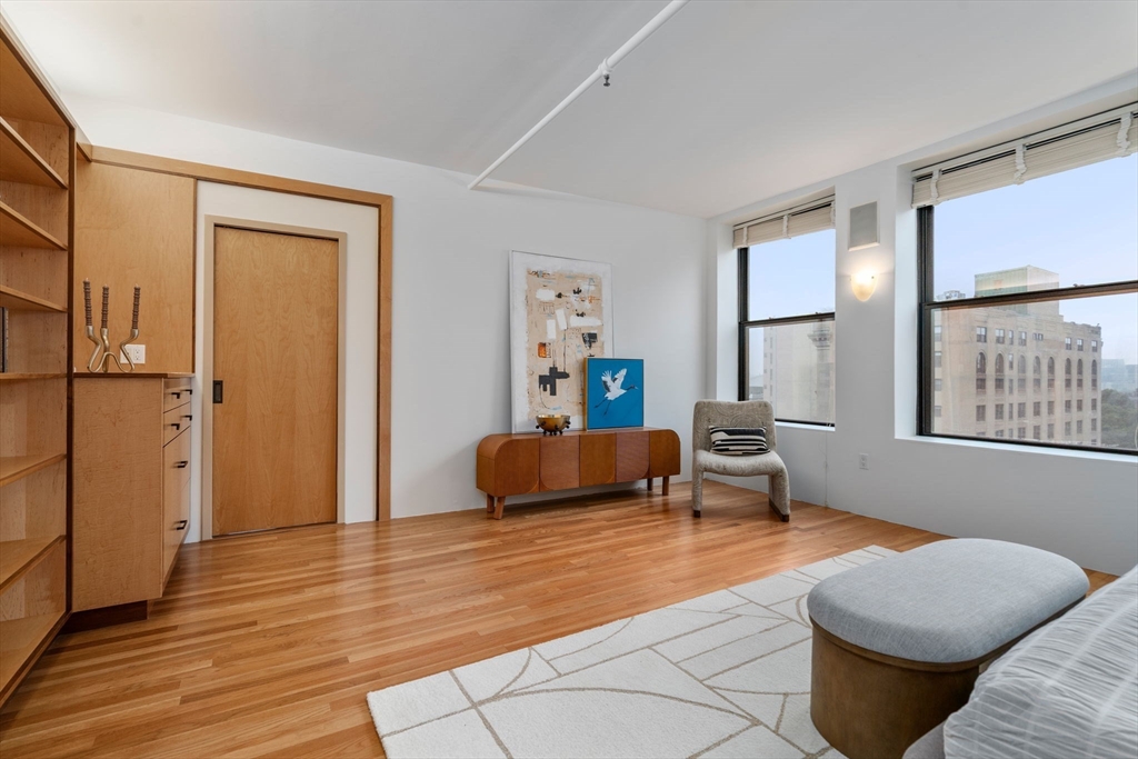 Discover urban elegance in this sophisticated three-bedroom, loft-style home in the heart of Midtown. This home includes exclusive roof rights with sweeping panoramic views of the city & the potential to create one of Bostons largest private roof decks! Open-concept, versatile floor plan has soaring ceilings, hardwood floors, & oversized windows that flood the space w/natural light. The spacious living room includes a dedicated dining area, perfect for entertaining. The chef's kitchen boasts Carrara marble countertops, stainless steel appliances including a double oven & custom cabinetry. Expansive primary bedroom, w/large walk-in closet & ensuite. There are 2 additional bedrooms that offer flexibility for guest rooms, home office, or creative space. Thoughtful custom built-ins are integrated throughout the home. Additional highlights include central air, elevator access & in a professionally managed building. Close to Boston Common, shopping, public transportation & Theater District.
