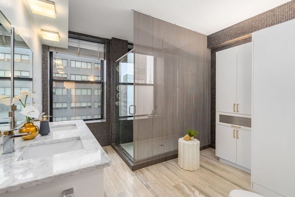This sophisticated three-bedroom, loft style home in the heart of Midtown is available for rent! Enter into an open-concept versatile floor plan with soaring ceilings, hardwood floors & oversized windows flooding the unit with natural light. A spacious living room includes a dedicated dining area, perfect for entertaining. The chef's kitchen boasts Carrara marble countertops, stainless steel appliances including a double oven and custom cabinetry. An expansive primary bedroom with large walk in closet and ensuite. Two additional bedrooms offer flexibility for guest rooms, home office, or creative space. Thoughtful custom built-ins are integrated throughout the home. Additional amenities include central air, elevator access & professionally managed building. Close to the Boston Common, shopping, public transportation and the Theater District!