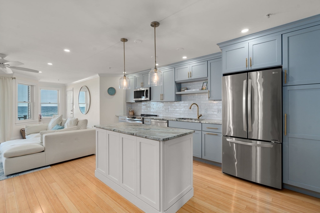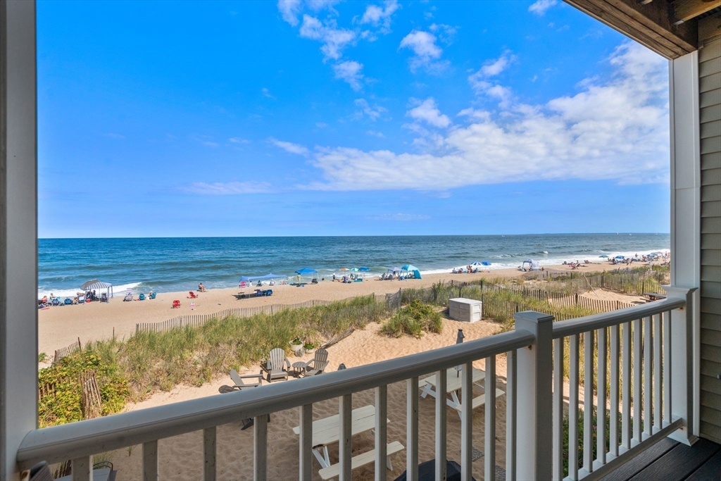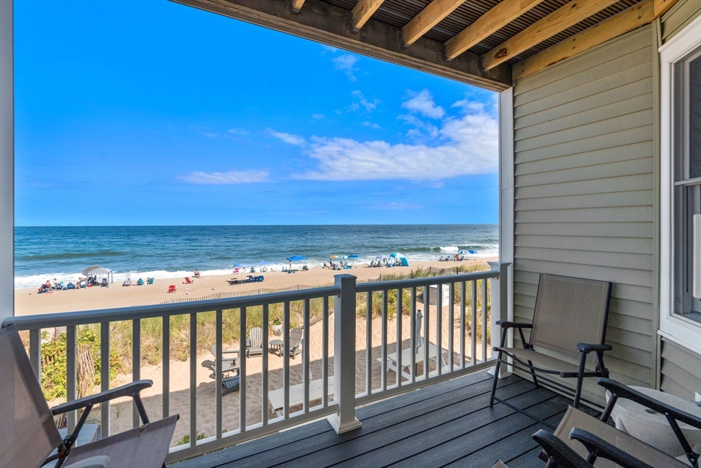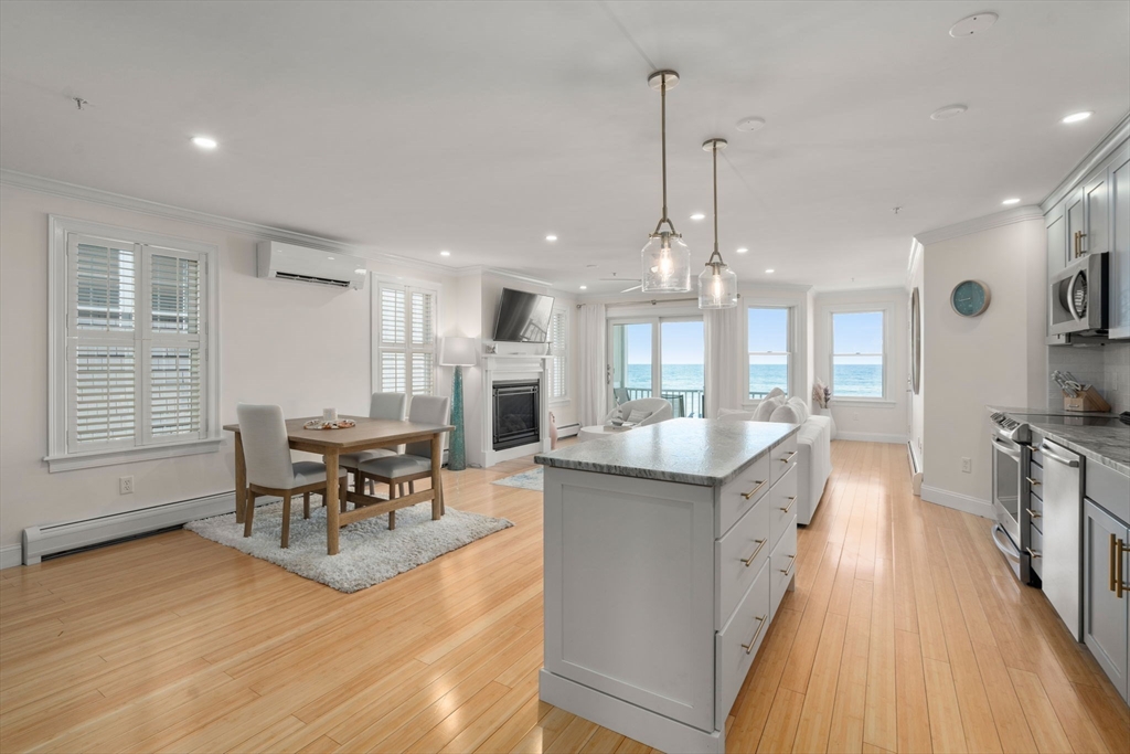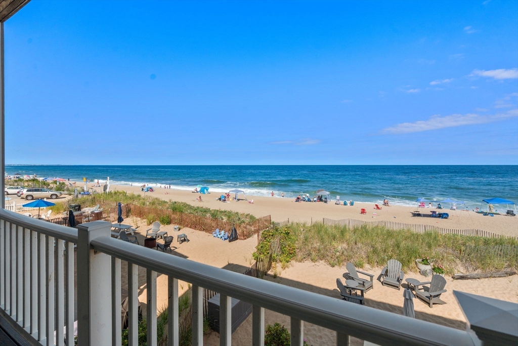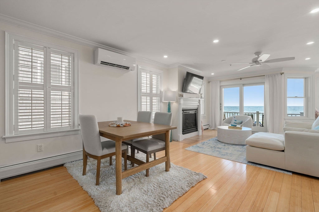 Sun-drenched, fully renovated 2BD/2BA beachfront condo with 2 parking spots! Enjoy an open-concept living, dining, and kitchen area with stunning ocean views. The modern kitchen features custom cabinetry, stainless steel appliances, and generous storage. Built-ins create an ideal work-from-home nook. Step through sliding glass doors to your private deck overlooking the beach. The primary suite offers a glass walk-in shower and ample closet space. A second bedroom and full bath complete the layout. Highlights include central air, gas fireplace, hardwood floors, in-unit laundry, and a large deeded storage unit. Don't miss this exceptional beachfront living opportunity!
