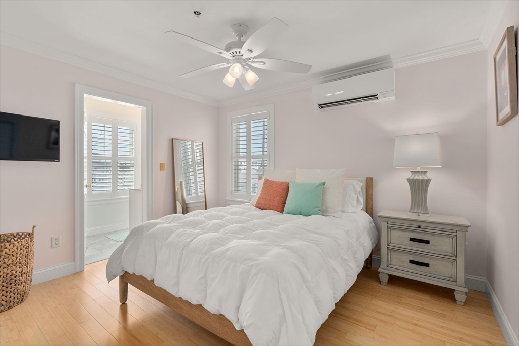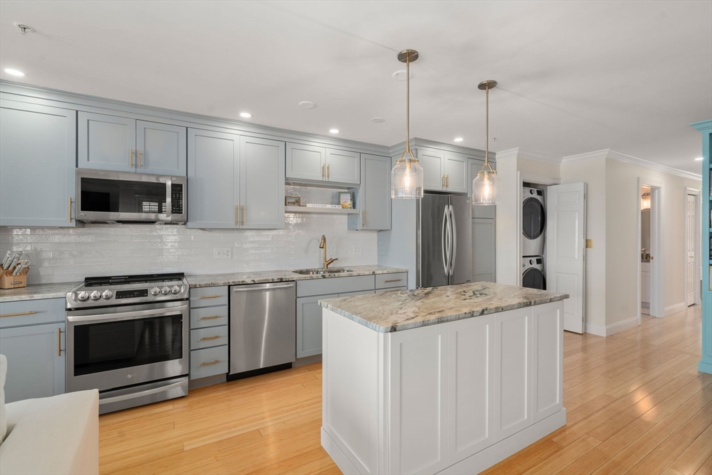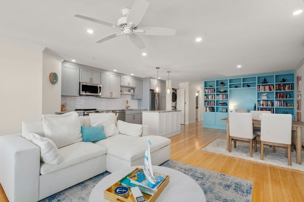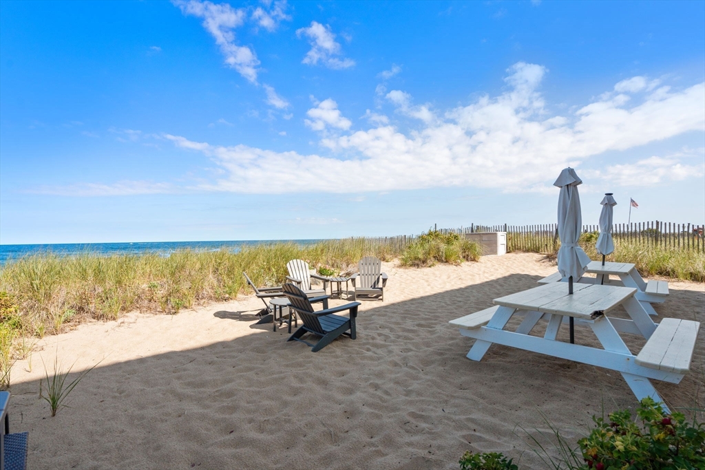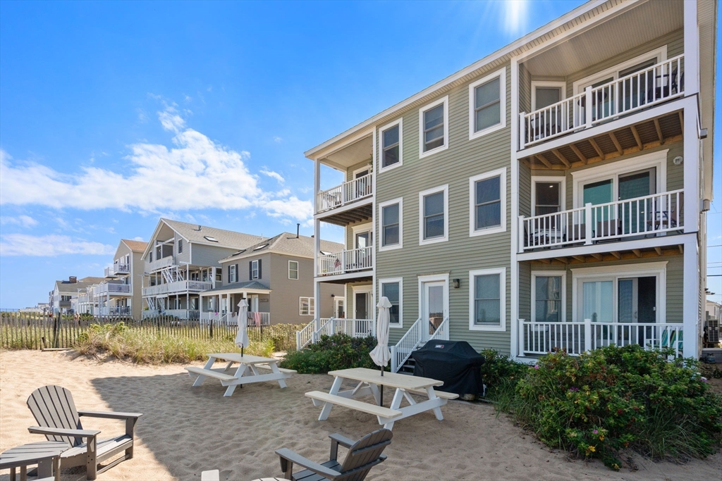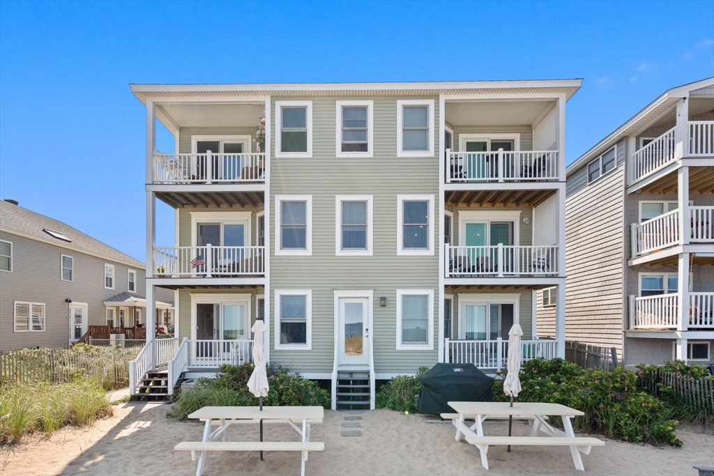 Sun-drenched, fully renovated 2BD/2BA beachfront condo with 2 parking spots! Enjoy an open-concept living, dining, and kitchen area with stunning ocean views. The modern kitchen features custom cabinetry, stainless steel appliances, and generous storage. Built-ins create an ideal work-from-home nook. Step through sliding glass doors to your private deck overlooking the beach. The primary suite offers a glass walk-in shower and ample closet space. A second bedroom and full bath complete the layout. Highlights include central air, gas fireplace, hardwood floors, in-unit laundry, and a large deeded storage unit. Don't miss this exceptional beachfront living opportunity!